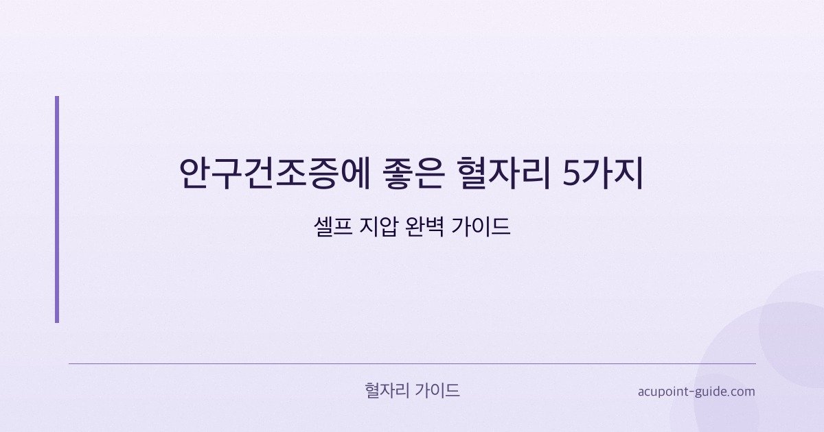 장시간 화면을 보는 현대인이라면 누구나 경험하는 안구건조증. 눈이 뻑뻑하고, 자꾸만 충혈되고, 눈을 뜨기가 힘든 그 답답함을 아시나요? 단순히 불편함을 넘어 눈 건강을 위협하는 이 증상, 혈자리 지압으로 효과적으로 완화할 수 있습니다.