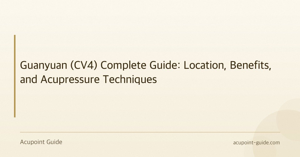 “headline”: “Guanyuan (CV4) Complete Guide: Location, Benefits, and Acupressure Techniques”,