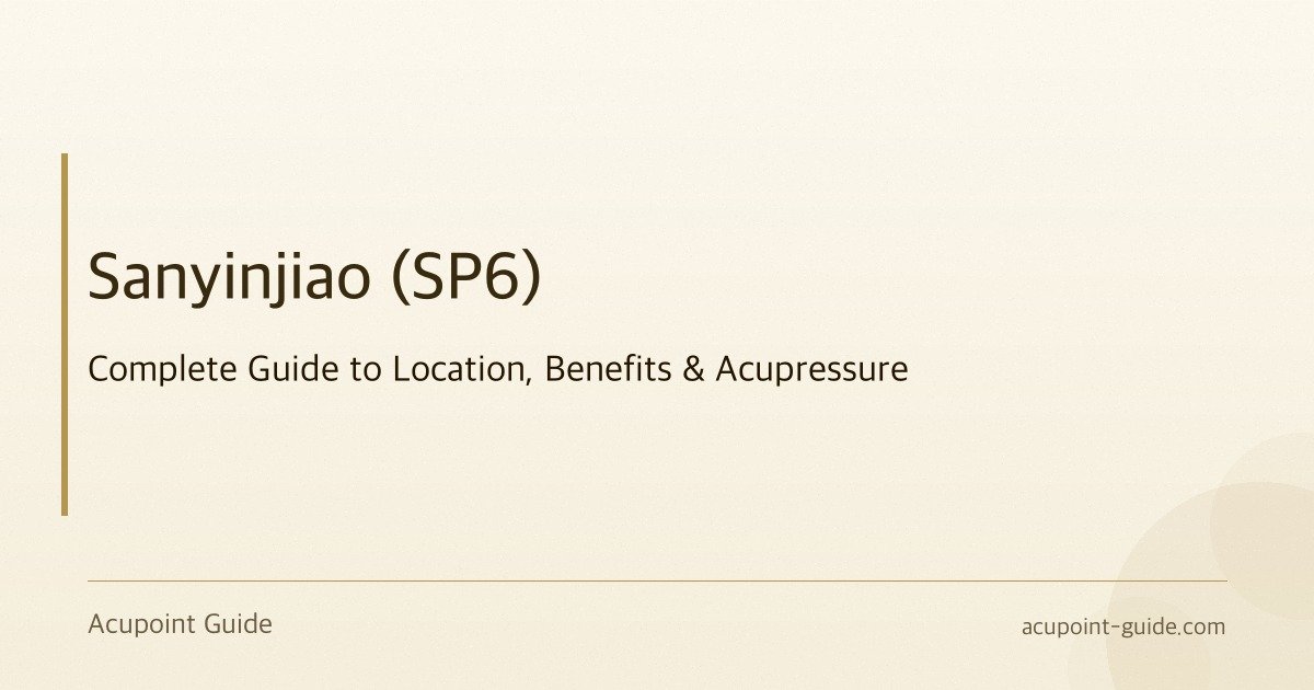 “headline”: “Sanyinjiao (SP6) — Complete Guide to Location, Benefits & Acupressure”,