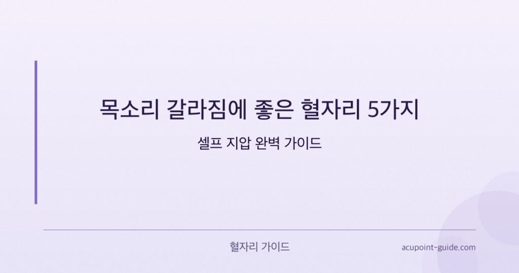 한의학에서 보면 목소리 갈라짐은 단순한 성대 피로만이 아닙니다. 폐(肺)의 음(陰) 기운 부족, 신장(腎)의 기력 저하, 목 부위의 기혈 순환 장애가 복합적으로 작용합니다. 혈자리 지압은 이러한 근본 원인에 접근하여 폐 기능을 강화하고, 목 주변의 혈액순환을 개선하며, 성대를 윤택하게 하는 효과가 있습니다. 약물 복용 없이 손가락만으로 언제 어디서나 실시할 수 있어 직장인들 사이에서 특히 인기 있는 셀프케어 방법입니다.