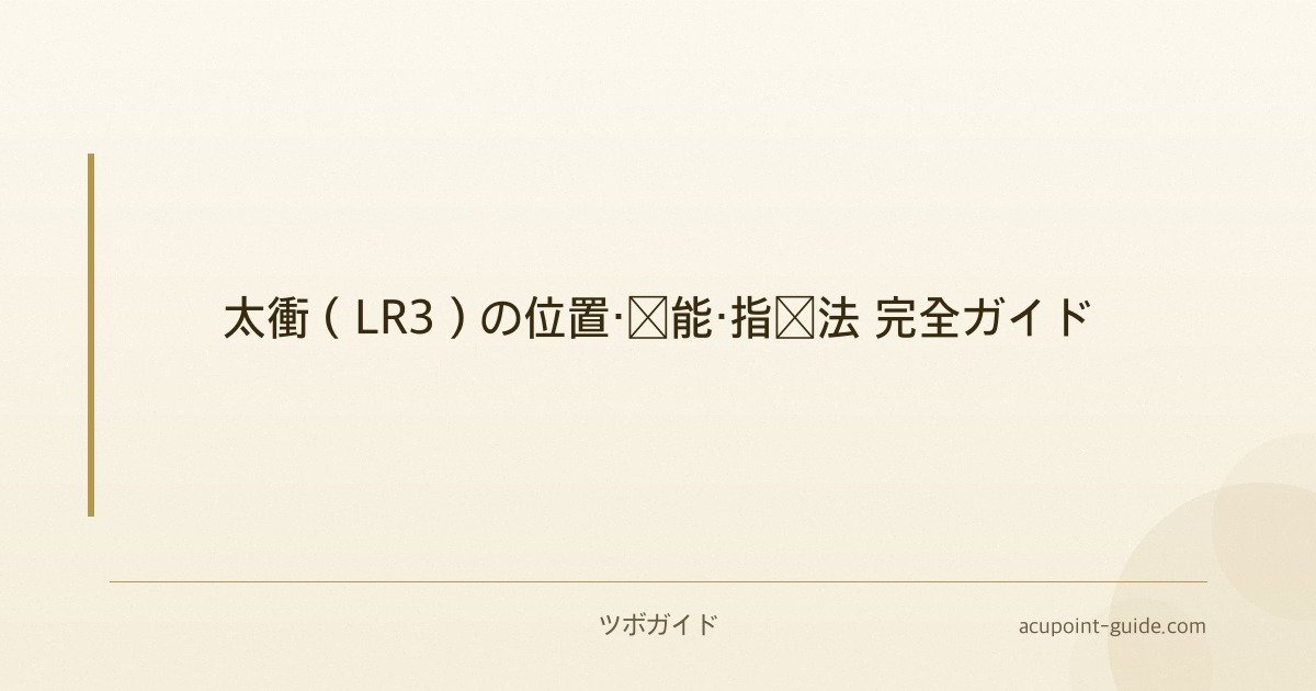 一言まとめ: 太衝(LR3)は足の甲にある「ストレス解消」のツボです。肝経絡のキーポイントで、怒りを感じるとき、頭が痛いとき、ストレスが溜まったときに押すと、驚くほどスッキリします。現代人の「怒りを鎮める」必須ツボです!