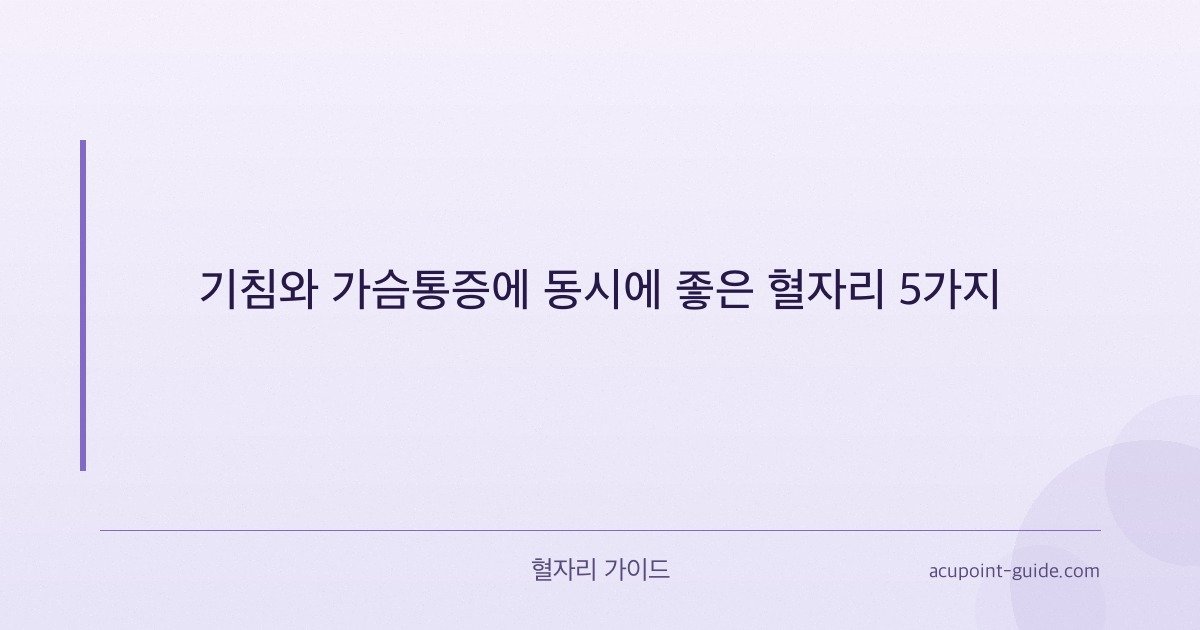 기침이 나면서 동시에 가슴이 아픈 증상은 많은 사람들이 겪는 불편함입니다. 이런 증상은 감기, 기관지염, 스트레스성 흉통 등 다양한 원인으로 발생하곤 합니다. 병원 치료도 좋지만, 전통 한의학에서 전해 내려오는 혈자리 지압으로도 증상을 완화할 수 있습니다. 이 가이드는 기침과 가슴통증을 동시에 완화하는 효과적인 혈자리 5가지를 소개합니다.